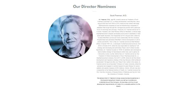 FCM nominated four highly qualified director-candidates for the AGM, including three independent candidates: Dr. Scott Freeman, Dr. Farzin Farzaneh, Mr. Vivek Jain, and Mr. Alexander Wodka. FCM’s candidates have broad expertise in areas of importance to operating a successful biotechnology company, which are detailed in the Proxy Statement. Notably, Dr. Freeman, MindMed's co-founder and former Chief Medical Officer, has a proven track record of successfully bringing drugs to market, such experience is sorely needed at MindMed.