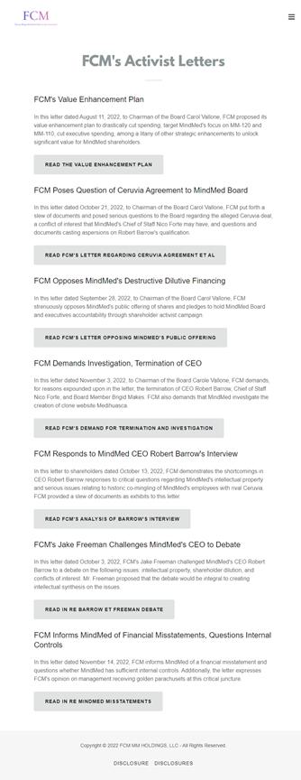 FCM believes that its director-candidates possess the required expertise and experience to revitalize MindMed, and FCM will be communicating its plans for restoring MindMed's value, including a comprehensive operational strategy, in the coming weeks.