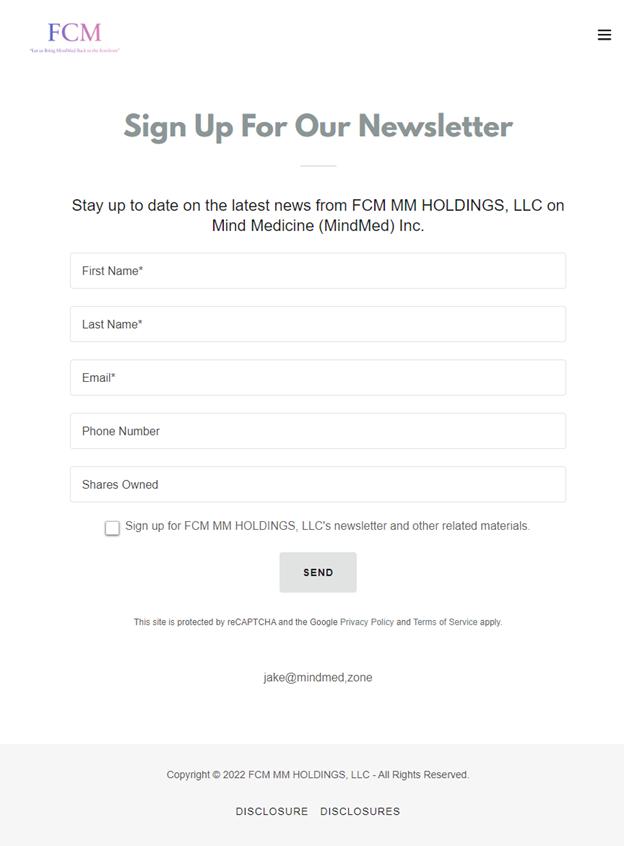 To stay informed as to the latest developments, FCM encourages MindMed stakeholders to sign up for its newsletter at: https://mindmed.zone/signup