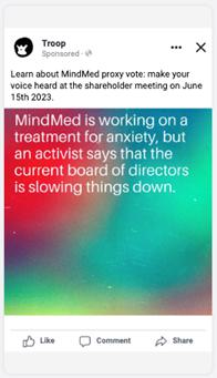 These are complex issues and, unfortunately, rather than confronting its past failings and implementing our plan to Restore MindMed, the current board and management are trying to muddy the waters and distract shareholders from what they need to know. We all say our plan is the best way forward, but I will make it simple for you. Unlike MindMed’s executive team, I will put my “money where my mouth is.” I am so confident that our plan will increase MindMed’s value that I will commit not to sell my MindMed shares until June 15, 2025, and FCM, Mr. Jake Freeman, and the other FCM director nominees commit to doing the same, if FCM’s slate of directors is elected. Further, I will not accept any director compensation should I be elected to the board.