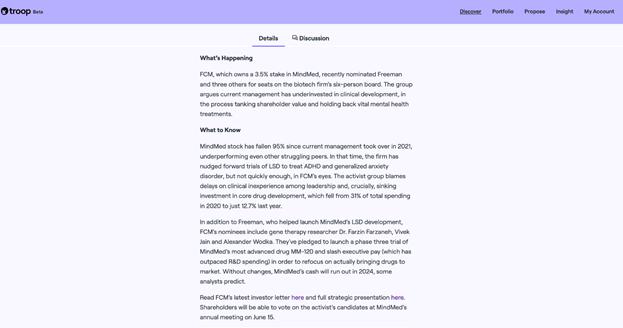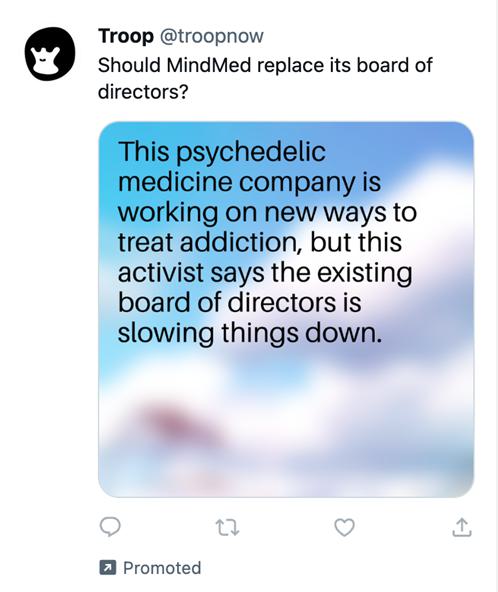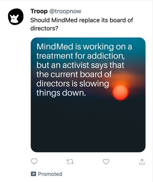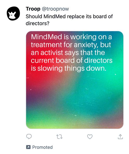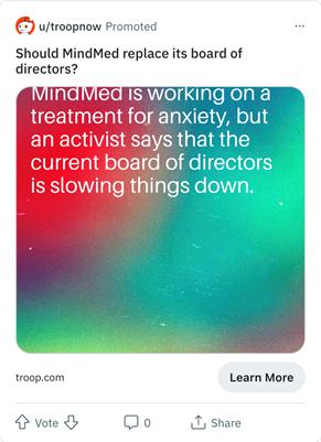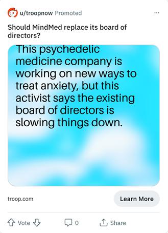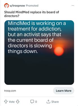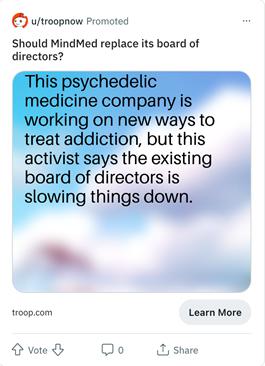 The company is called MindMed, and a group of shareholders is not happy about company performance.