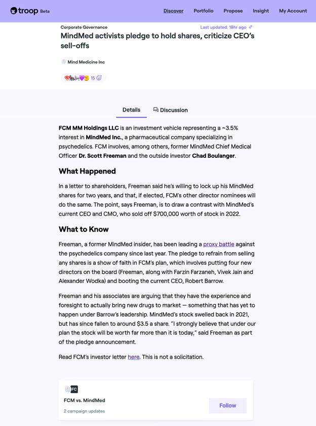 We strongly believe that MindMed needs the right leadership to get back on track and properly position itself for the future. In our view, MindMed has lost its way and shareholders cannot afford for MindMed to waste the amazing opportunity we have ALL dreamed about for years. We believe MindMed’s future starts with being true to its original vision to get LSD approved by the FDA for the benefit of millions with mental health disorders.
