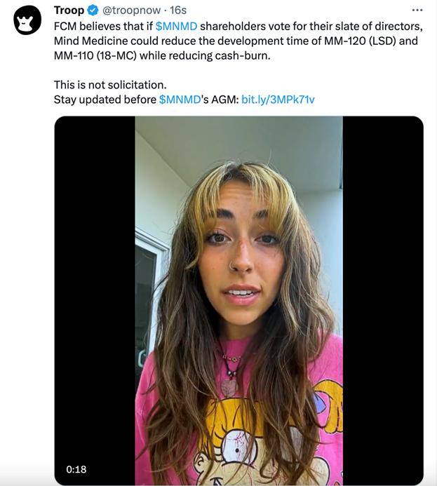 This press release and any solicitation made by FCM in advance of the AGM is, or will be, as applicable, made by FCM and not by or on behalf of the management of MindMed.