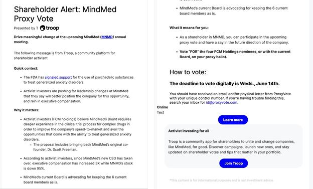 | · | FCM’s credible plan and nominees who can put MindMed’s drug development plan back on track. |